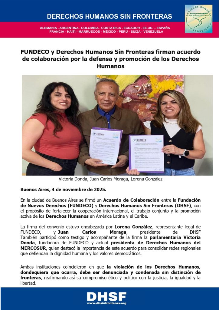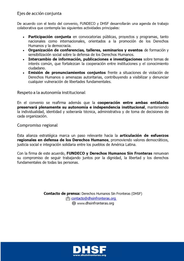 FUNDECO y Derechos Humanos Sin Fronteras firman acuerdo de colaboración por la defensa y promoción de los Derechos Humanos
